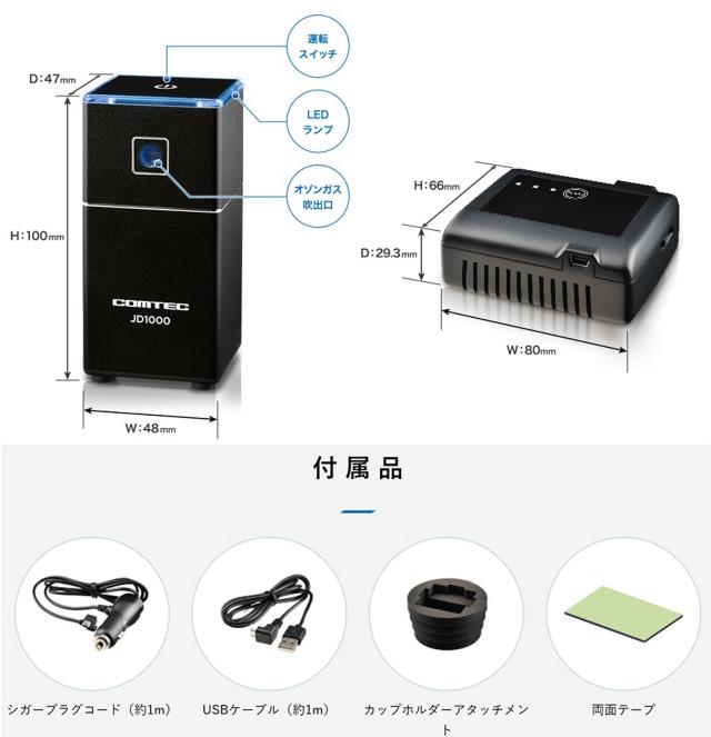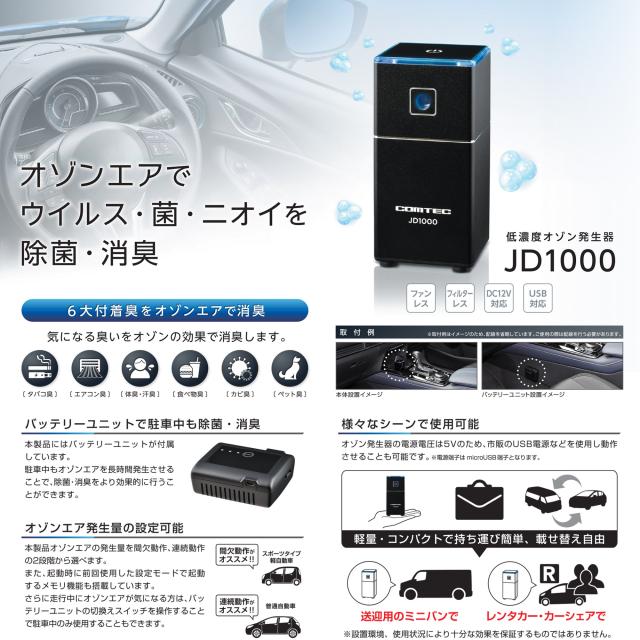 低濃度オゾン発生器 コムテック オゾンエアでウイルス・菌・においを除菌・消臭 JD1000 車内のウイルス/菌/ニオイをオゾンエアで除菌&消臭 CHUHATSU-JD1000