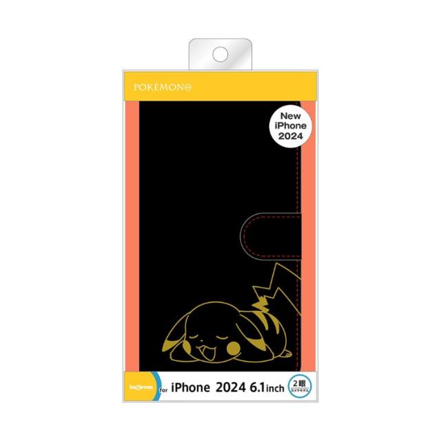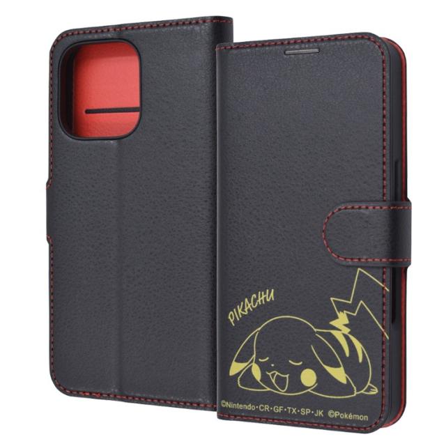iPhone16Pro ケース 手帳型 ポケモン ピカチュウ ブラック キャラクター グッズ 衝撃吸収 ベルト アイフォン アイホン