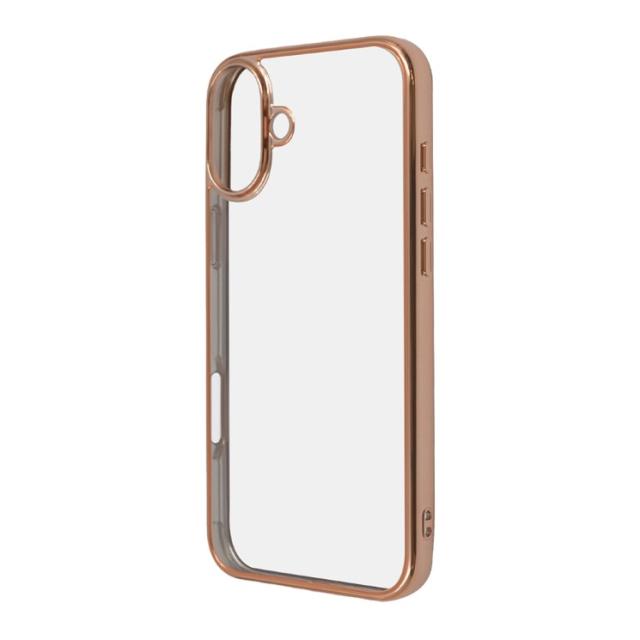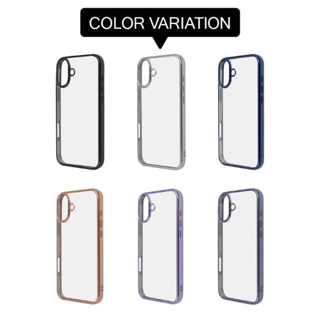 iPhone16Plus ケース クリア ピンク ゴールド メタリック フレーム 透明 衝撃吸収 シンプル 無地 MIL規格 頑丈 スマホ カバー ハイブリッド アイフォン アイホン