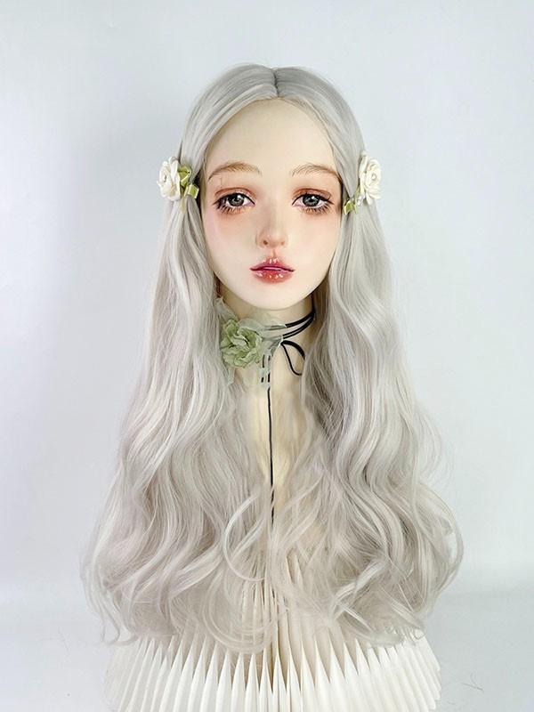 ウィッグ レディース フルウィッグ ロング 巻き髪 シルバー 銀髪 可愛い かわいい 大人用 コスプレ ロリータ ゴスロリ コスチューム 原宿風 仮装 超自然 かつら wig Lolita 小顔 文化祭 イベント 学園祭 ハロウィン