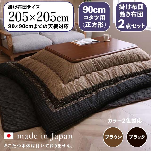 掛け敷き布団セット 90cmこたつ用 205×205cm(正方形) ブラック ブラウン 全2色 SOM 日本製 こたつ布団 厚掛け 掛布団 敷き布団 全2色 国産 おしゃれ 北欧