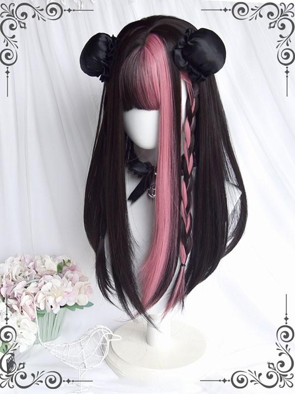 ウィッグ レディース フルウィッグ ロング メッシュ ストレート 地雷系 ブラック ピンク ぱっつん前髪 前髪あり 可愛い かわいい 大人用 コスプレ ロリータ ゴスロリ コスチューム 原宿風 仮装 超自然 かつら wig Lolita 小顔 文化祭 イベント 学園祭 ハロウィン dq133n1n1z7