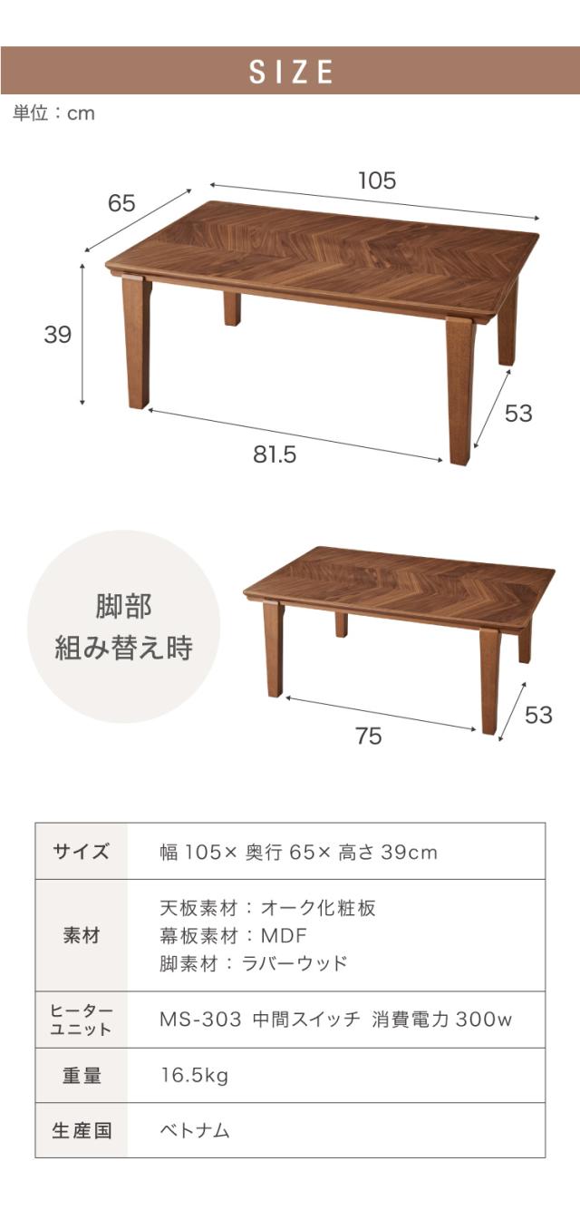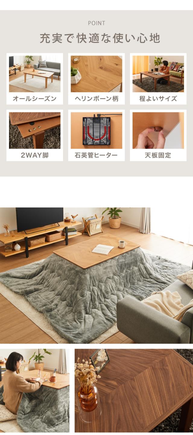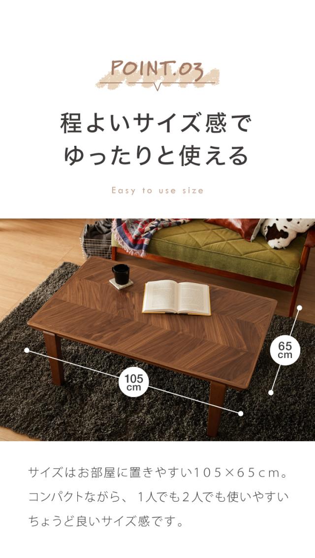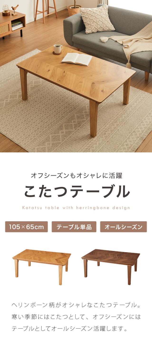 こたつテーブル ヘリンボーン柄 105×65cm 長方形 こたつ 暖房器具 省エネ 節電 暖房 おしゃれ 北欧 インテリア コタツ 炬燵 センターテーブル ローテーブル コンパクト 省スペース(代引不可)【