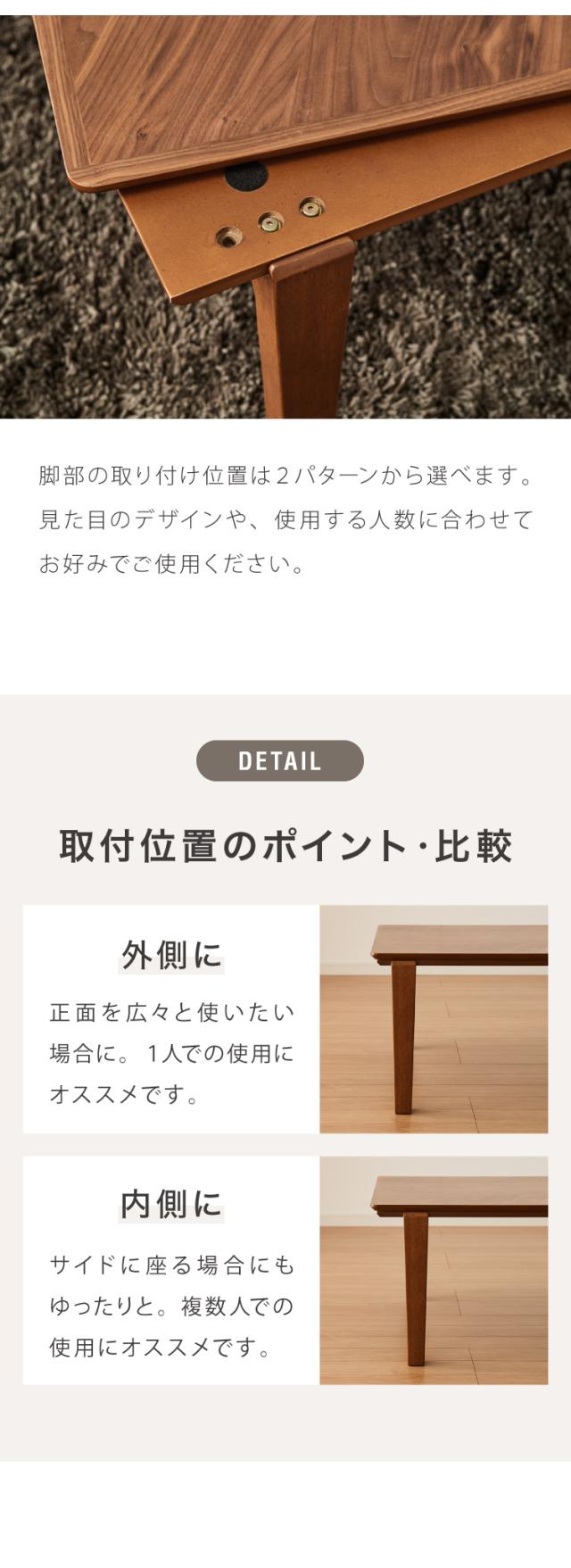 ヘリンボーンのこたつです。脚の付け方が2WAYタイプになっています。