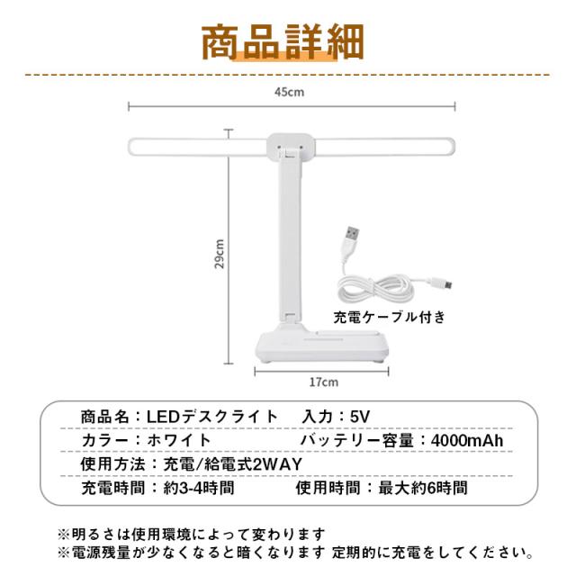 デスクライト コードレス led 充電式 明るい 子供 usb 目に優しい ledライト 勉強 北欧 白 電気スタンド スタンドライト ディスプレイ