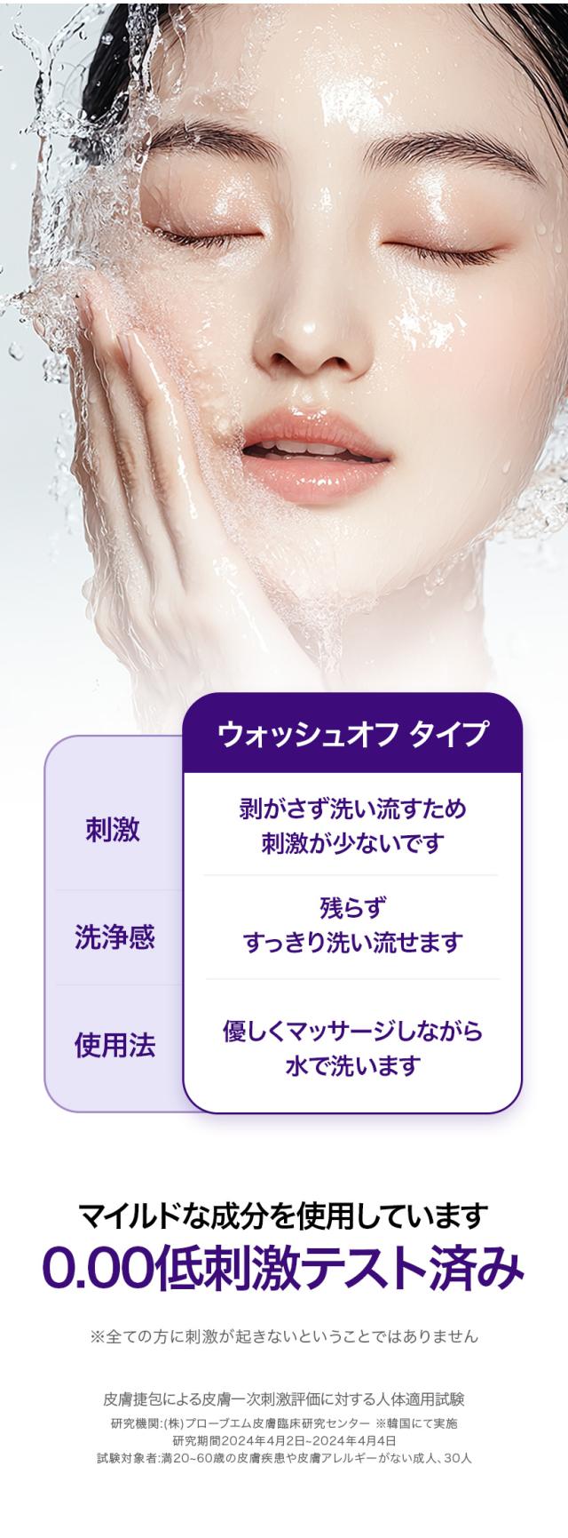 ※物理的に数分間肌を強く引き締めるため、荒い流し直後は肌が赤くなっていることがありますが数分で消えますのでご安心ください。