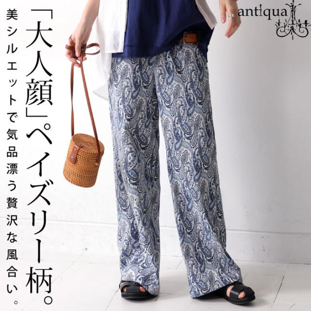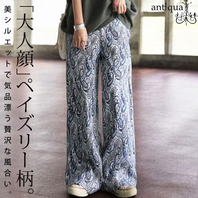 【検索ワード】ペイズリー柄パンツ パンツ レディース ボトムス 柄パンツ 柄 ロング ゆったり ワイド ワイドシルエット ペイズリー ストレート 総柄 落ち感 長ズボン ポケット付き ウエストゴム 前フラット 後ろゴム 綿 コットン 綿混 美脚 脚長 すっきり リラックス 体型カバー 細見え 着痩せ 大きめ 大きいサイズ ブルー 青 サイズ展開 Regular Plus ユニセックス antiqua treecafe アンティカ ツリーカフェ 大人 おしゃれ 10代 20代 30代 40代 50代 60代 春 秋 冬 お洒落 カジュアル かわいい かっこいい あんてぃか
