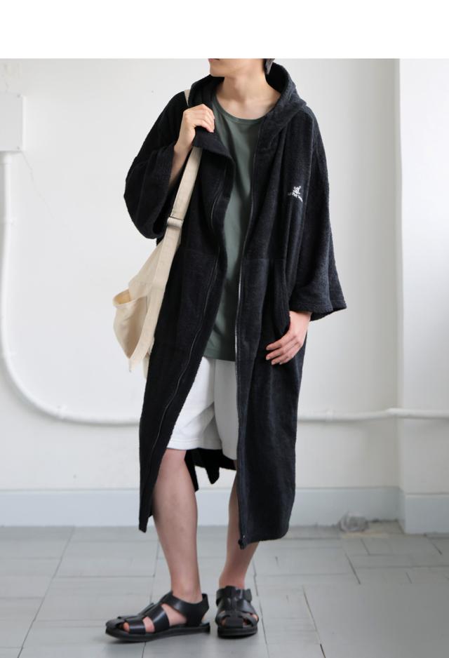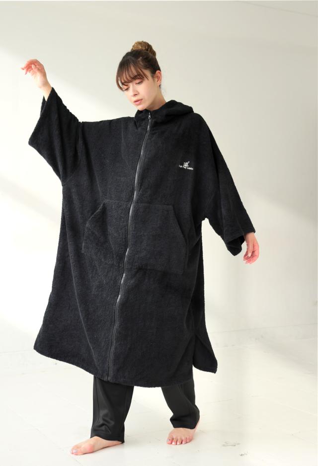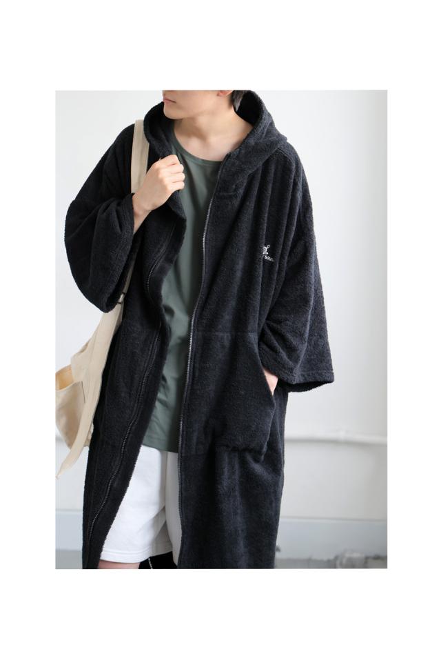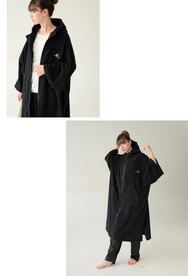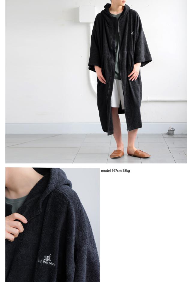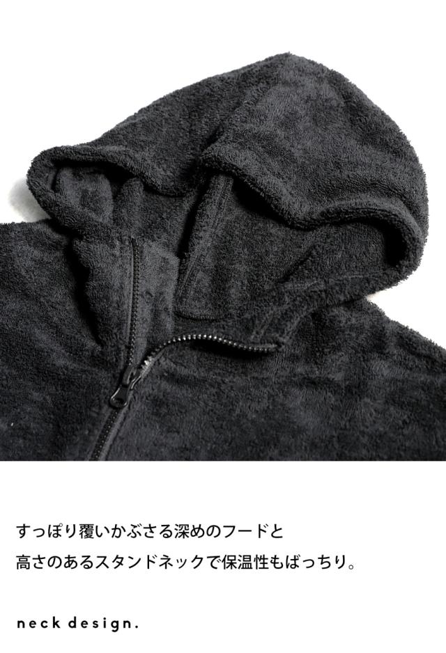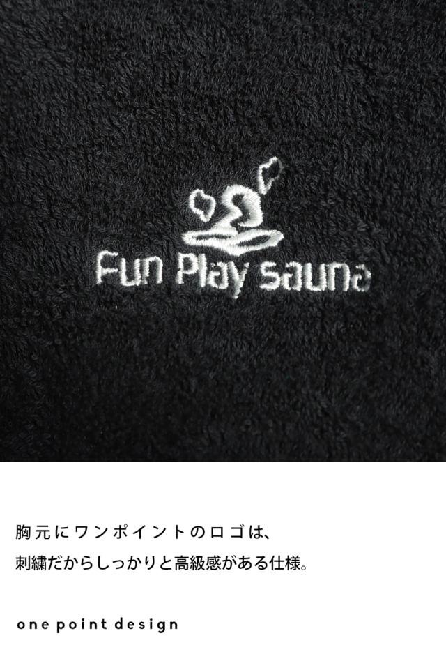 pls-0016z サウナ サウナグッズ ロゴ ロゴ刺繍 デザイン 綿100 綿 コットン ゆったり ゆとり シンプル リラックス パイル生地 スタンドネック フード付き ファスナー 前開き