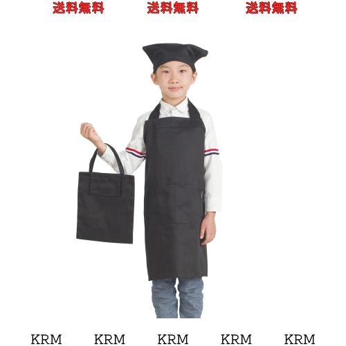 [JACKIE&YORK] エプロン 子供 キッズ 三角巾 収納バッグ付き 着脱簡単 小学生 男女兼用 かわいい シンプル ホコリが付きにくい (高学年用
