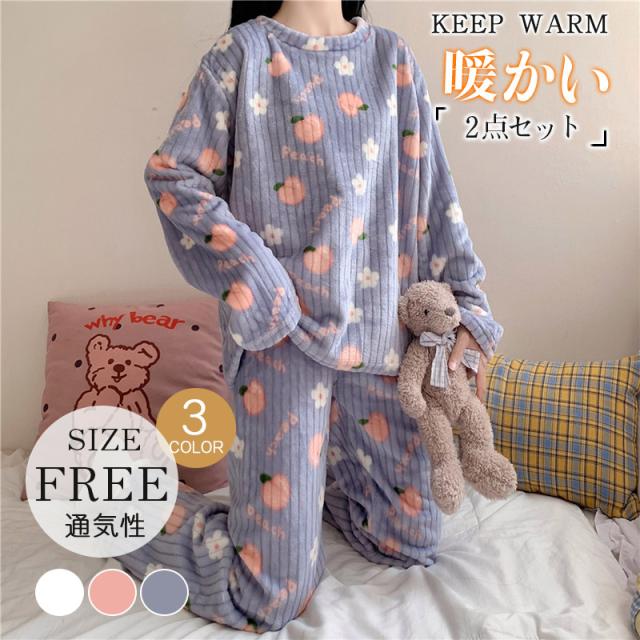 パジャマ レディース ルームウエア 部屋着 寝巻き ナイトウエア 2点セット 長袖 秋冬 可愛い 裏起毛 上下セット ふんわり 入院 産後 シンプル