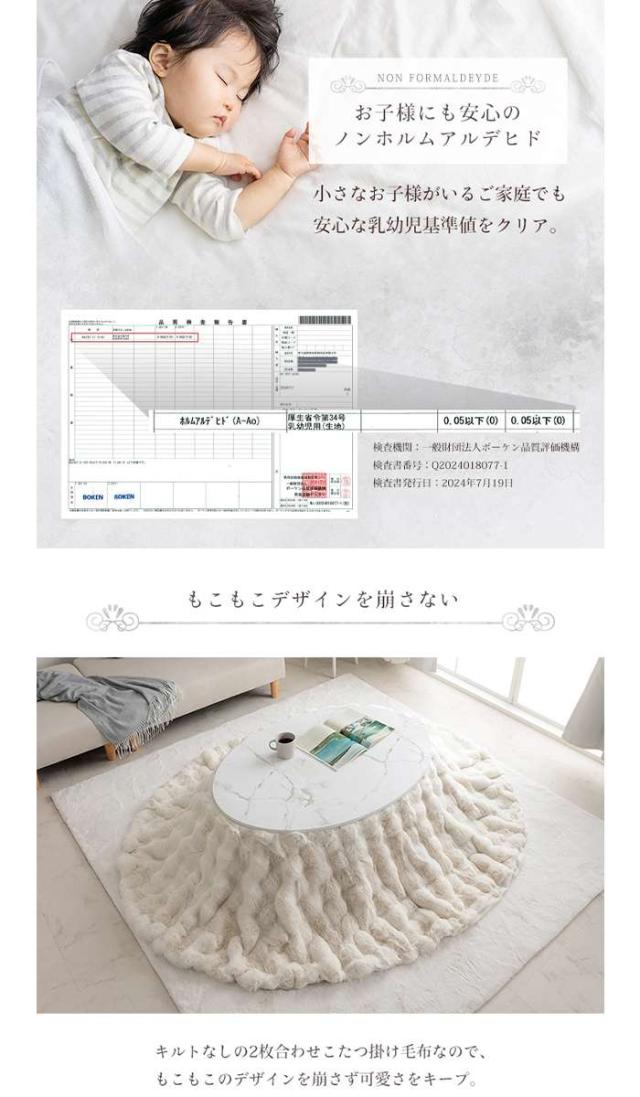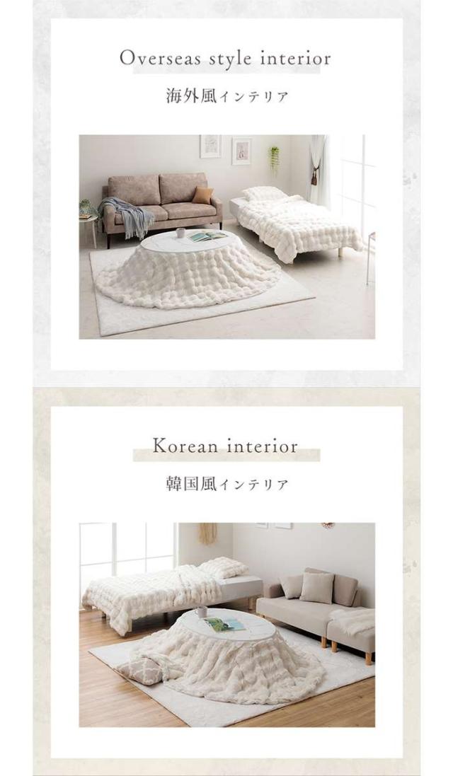 ■商品名:こたつ布団 楕円形 アイボリー 約185×225cm楕円 こたつ掛布団 こたつ掛け毛布 洗える おしゃれ かわいい コタツ布団 白 フェイクファー フランネル 省エネ 韓国インテリア 海外風 新生活 北欧 姫系 ふわふわ