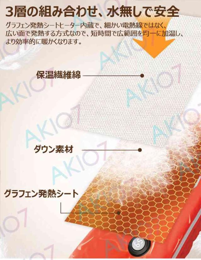 【3層の組み合わせ・水無しで安全】グラフェン発熱シートヒーター内蔵で、細かい電熱線ではなく、広い面で発熱する方式なので、短時間で広範囲を均一に加温し、より効率的に暖かくなります。