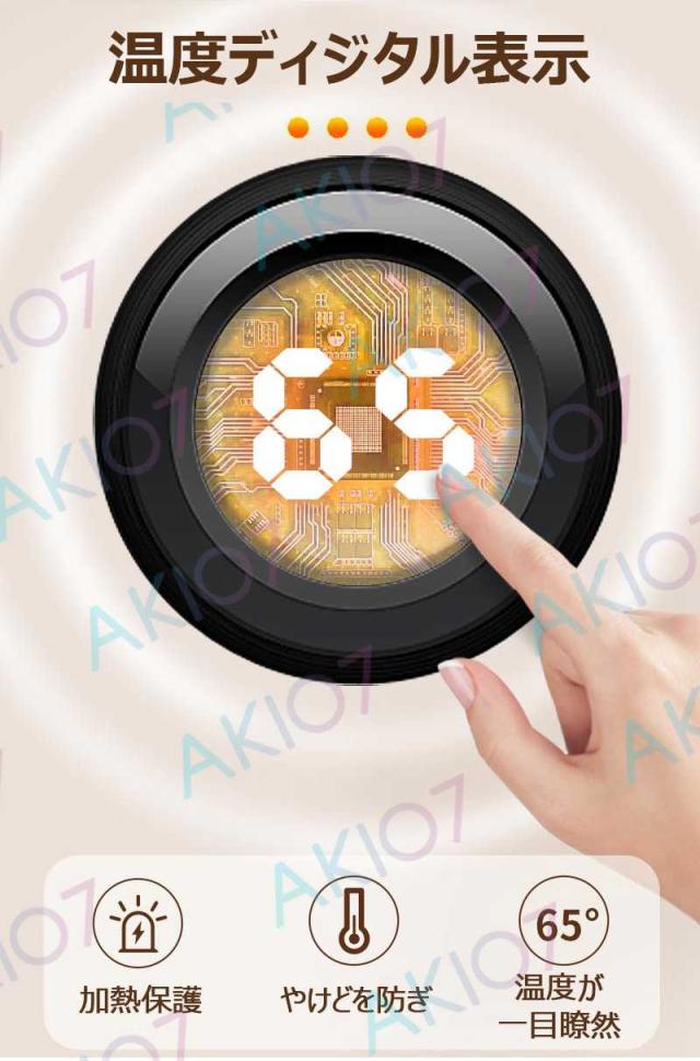 【速暖?温度4段階調整】温度は好みに応じて1回押すと約37℃・2回押すと約45℃・3回押すと約55℃・4回押すと約65℃、4段階設定可能で、温度はディジタル表示で一目瞭然です。