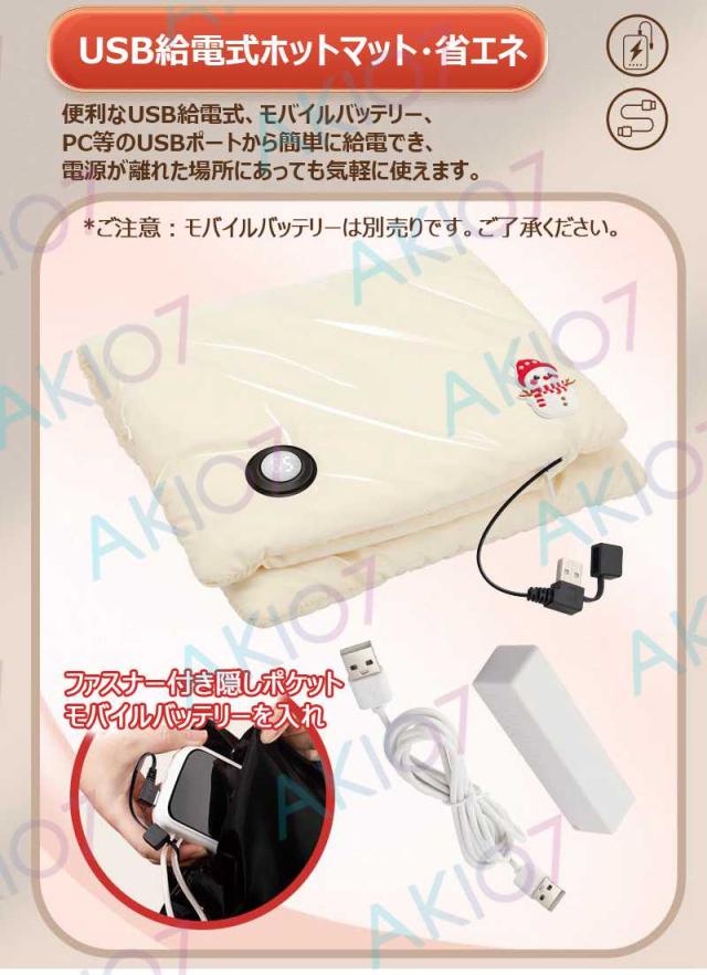 【USB給電式ホットマット・省エネ】便利なUSB給電式、モバイルバッテリー、PC等のUSBポートから簡単に給電でき、電源が離れた場所にあっても気軽に使えます。