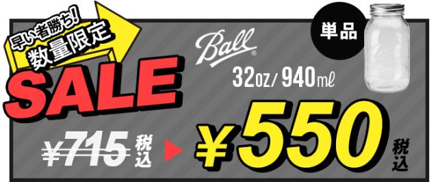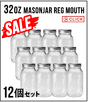 【SALE大特価】 保存容器 ガラス ビン 容器 密閉 メイソンジャー 正規品 Ball レギュラーマウス 32oz 940ml [単品] Mason jar 大容量 アメリカ製 密封容器 ボトル 保存ビン ガラス瓶 ピクルス 果実酒 スイーツ おしゃれ カフェ 透明 まとめ買い 密閉ポット