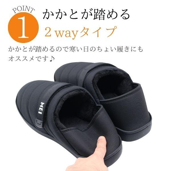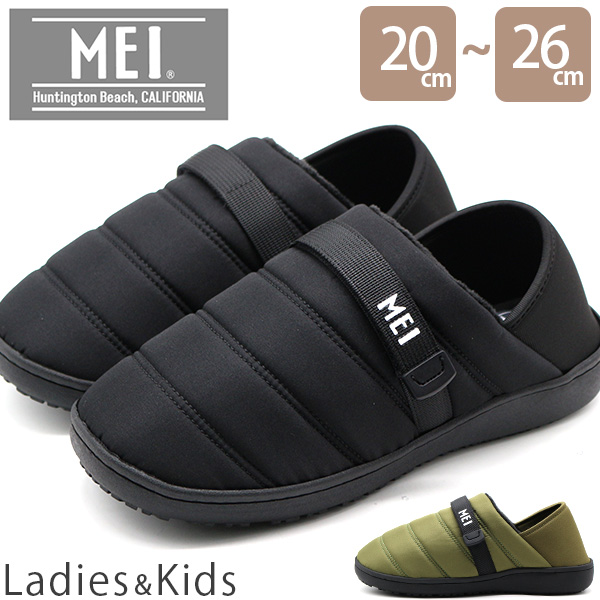 MEI スリッポン レディース 靴 サンダル モックシューズ 黒 ブラック カーキ かかと踏める スリッパ おしゃれ かわいい 厚底 暖かい 防寒 裏起毛 冬 防滑 滑らない 軽量 軽い 歩きやすい 疲れない 室内 屋外 キッズ ジュニア 子供 SHL243008 SHM243008 メイ MEI ギフト