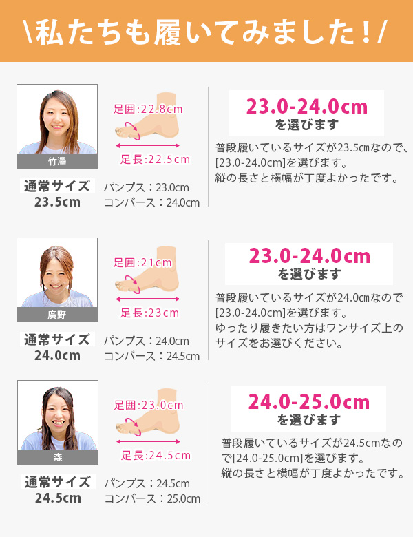 取り扱いサイズ:20-21cm 21-22cm 22-23cm 23-24cm 24-25cm 25-26cm