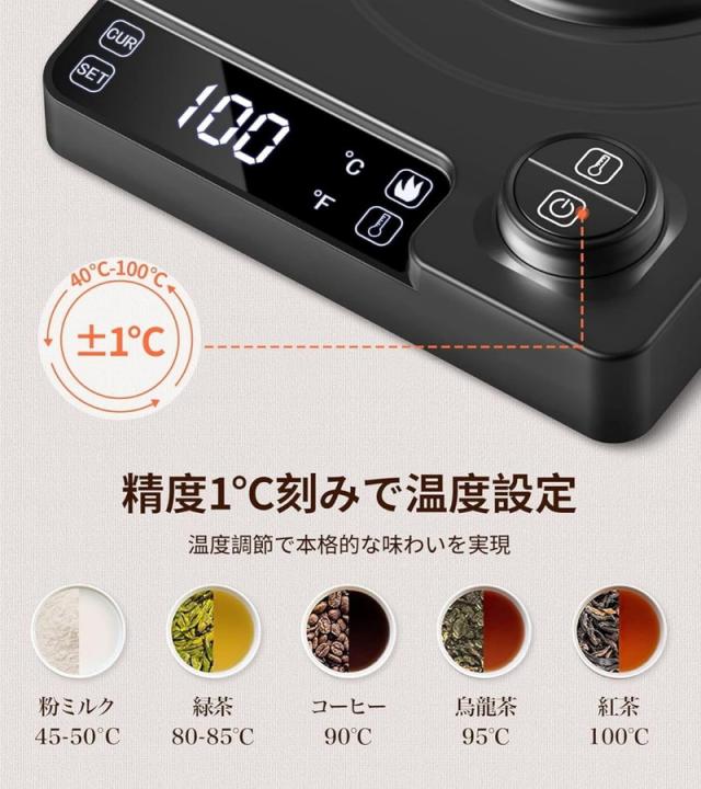 電気ケトル 温度調節 ケトル 湯沸かしケトル 電子ケトル 1.0L コーヒー ケトル ステンレス 湯沸かしポット小型 おしゃれ 空焚き防止