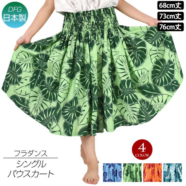 フラダンス衣装 パウスカート シングル ダンス衣装 フラ 衣装 フラスカート ハワイアン CC24X23[新品] パウ pau hula モンステラ 葉 ロングスカート タヒチアン フラの衣装 綿混 4本ゴム