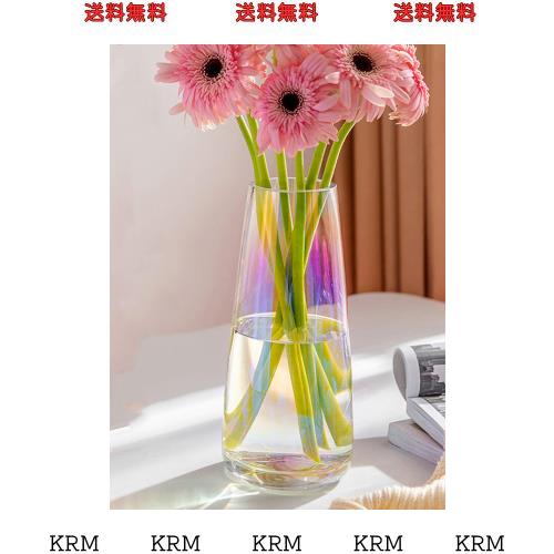 【Yuuming】ガラス フラワーベース 花器 花瓶 22cm (透明マルチカラー)