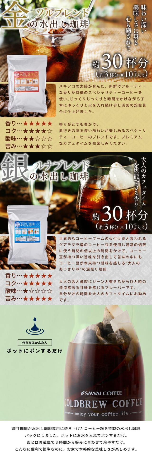 お歳暮 金と銀の贅沢飲み比べセット60杯分 澤井珈琲 水出しコーヒー 送料無料 アイス コーヒーバッグ コールドブリュー 珈琲 水出し珈琲 ギフト 贈り物 飲み比べ セット ソルブレンド ルナブレンド 御歳暮 冬ギフト