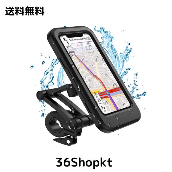 Boobaaa 自転車 バイク スマホホルダー 防水 6.7インチ以内対応 スタンド 強力固定 充電口 イヤホン口あり 撮影可 高さ調整 360度回転 ip