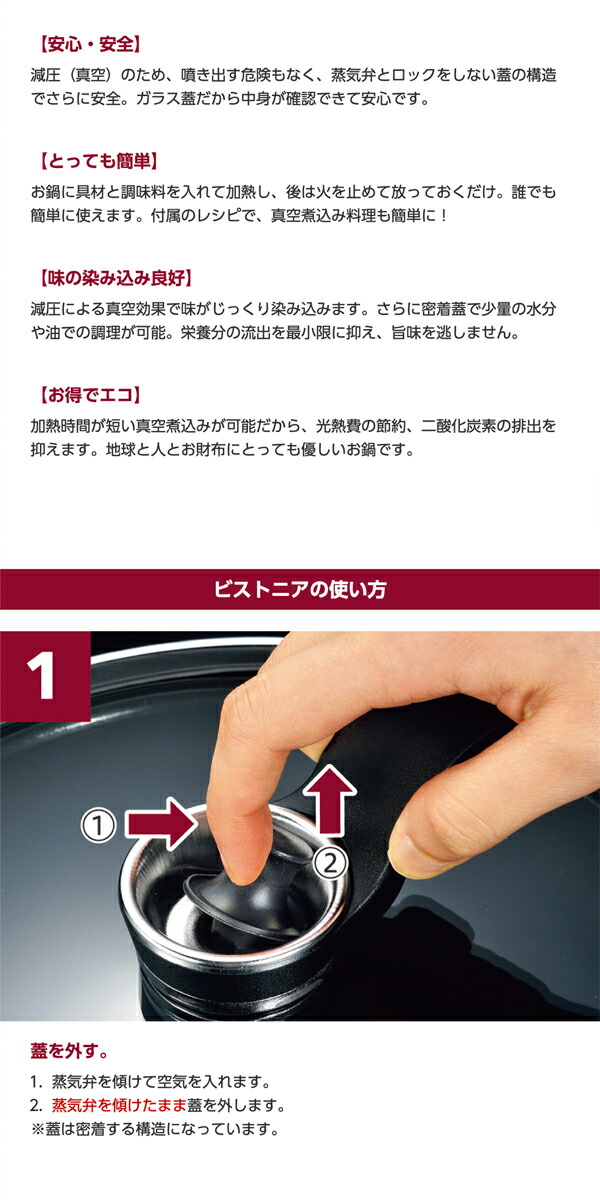 煮込み料理の肝は味の染み込み。ビストニアなら料理を加熱後、火を止めてから始まる減圧(真空)効果で味がじっくり染み込みます!真空を活用した調理法、試してみませんか? |