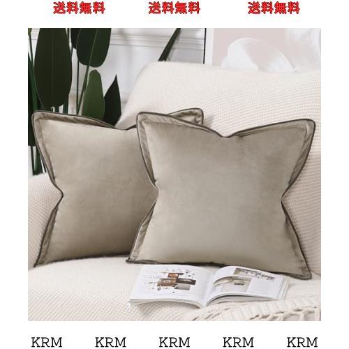 Madizz 2枚セット ビロード 装飾的な 縁取られた クッションカバー 柔らかい 北欧 おしゃれ 贅沢 スタイル ソファ用 寝室用 座布団カバー ライトトープ 45x45 cm
