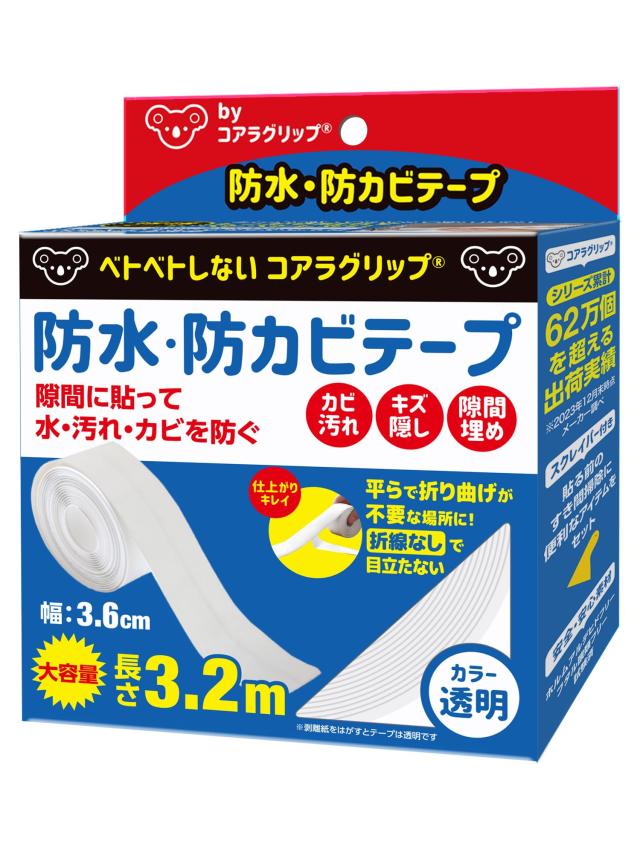 ◆商品名:コアラグリップ 防カビテープ すきまテープ 防水テープ 補修テープ カビ隠し 汚れ隠し キズ隠し マスキ ングテープ PVC (中央線なし, 透明