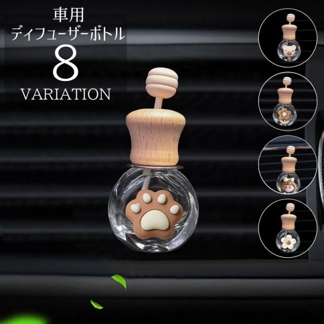 アロマディフューザーボトル 車用 瓶 ガラス 芳香剤ケース 香水瓶 フレグランスボトル ウッドスティック 木製キャップ かわいい