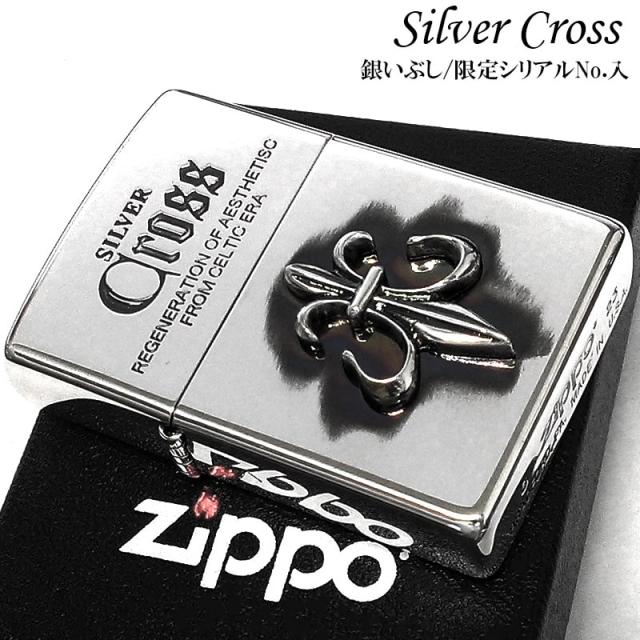 ZIPPO ライター 限定 シリアルナンバー入り ジッポ ユリ 紋章 シルバー 彫刻 銀燻し シルバークロス 百合 かっこいい おしゃれ メンズ