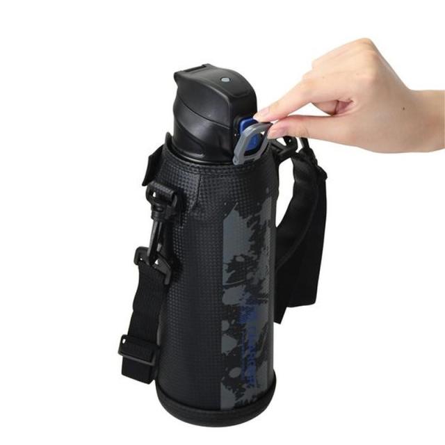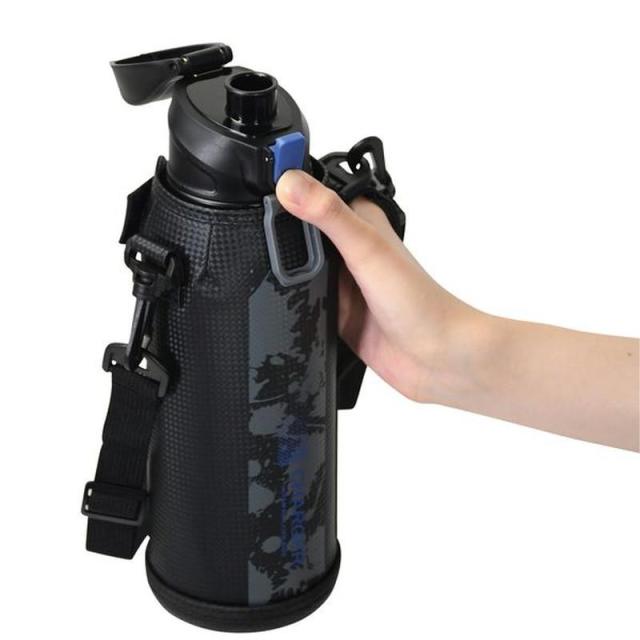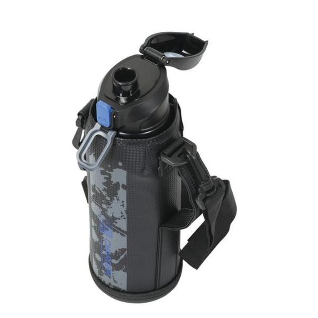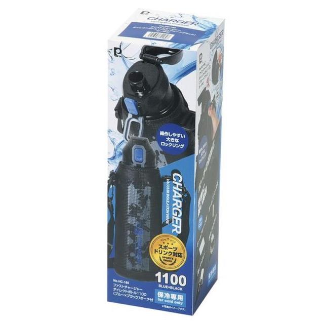 水筒 子供用 直飲み 保冷専用 ステンレス ファストチャージャー ダイレクトボトル 1100ml ショルダーベルト カバーポーチ付き ブルー×ブラック
