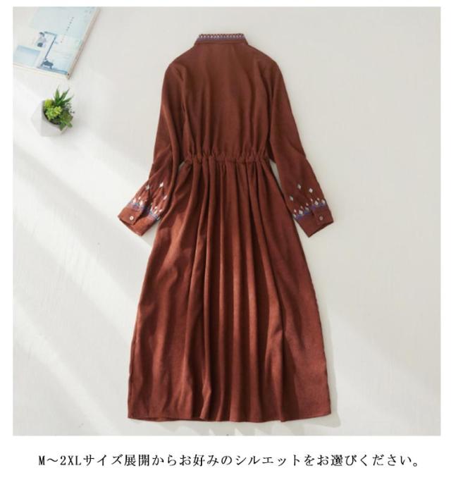 | ナチュラルな風合いで、落ち着いた大人の雰囲気へ導く刺繍ワンピース♪ 花柄刺繍がアクセントになり、羽織るだけでもオシャレ見え◎ ウエストのリボンを絞ればシルエットに変化をつけられるのも嬉しいポイント。 お洒落な雰囲気を放つコーデュロイ素材は、肌触りも良く着心地抜群。 細畦のコーデュロイがカジュアルすぎず、ハリ感がしっかりあるのでシルエットが綺麗に見えます。 M〜2XLサイズ展開からお好みのシルエットをお選びください。 | |