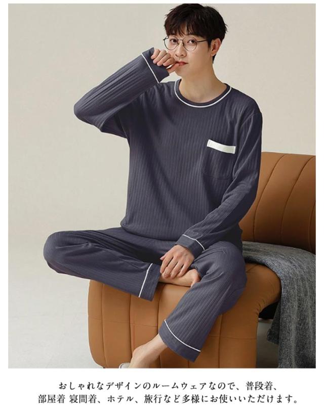 ルームウェア メンズ 父の日 薄手 紳士 長袖Tシャツ 綿 長ズボン パジャマ 大人 お洒落 男性 秋用 冬 長袖 秋 長ズボン 無地 可愛い 部屋着 寝間着 大きいサイズ 春夏 冬 上下セット おそろい 敬老の日