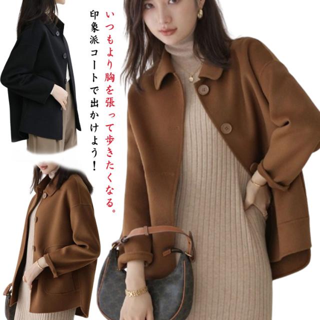 コート ショート レディース 秋冬 ショート丈 スリム 厚手 ダッフルコート テーラーカラー コート 低身長 ショートコート Pコート ピーコート 大人 カジュアル 韓国 あたっか 防寒 保温 通勤 通学 大きいサイズ 30代 40代 50代