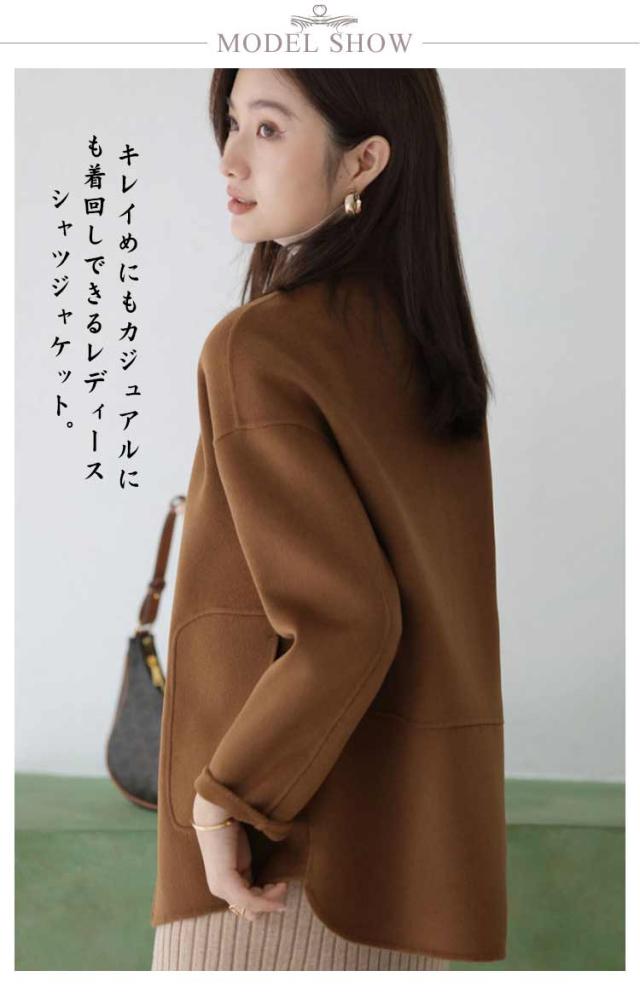 | いつもより胸を張って歩きたくなる。印象派コートで出かけよう! キレイめにもカジュアルにも着回しできるレディース シャツジャケット。 上半身をコンパクトに見せるややショート丈で、ジャケットのように軽く羽織れる仕上がりです。 立体的なフォルムなど、頼りになるアイテム、ディテールが満載。極上の一枚を今こそ手にしたい。 な冬コートなので、OLさんからママまで年齢問わず幅広い年齢の方にも着用していただけます。 | |