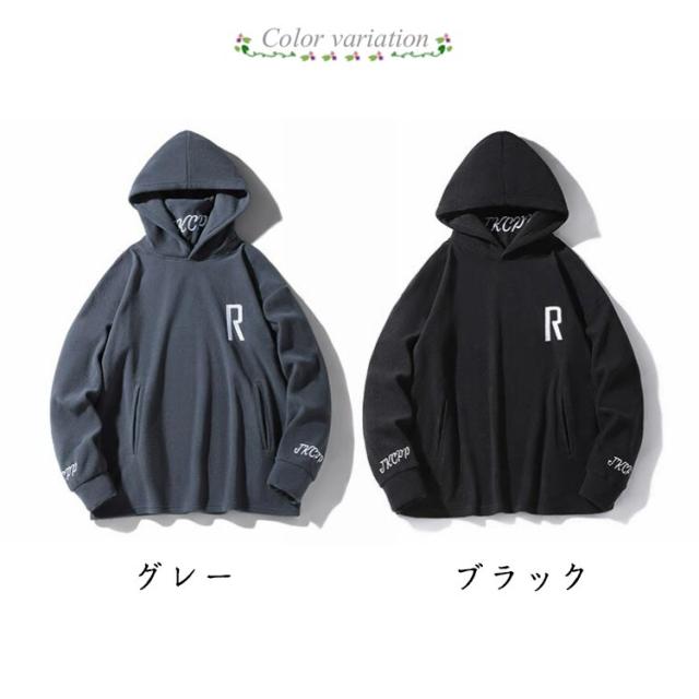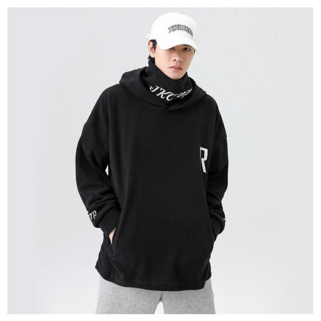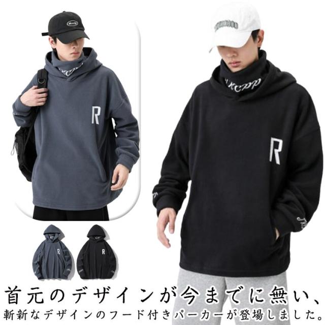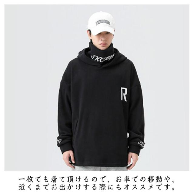 パーカー ハイネック フリース メンズ 厚手 フード付き 大きめ 刺繍 長袖 ゆったり スウェット 上 大きいサイズ タートルネック プルオーバー 秋冬 防寒 ルームウェア 暖かい あたたか カジュアル トップス 秋物 冬服