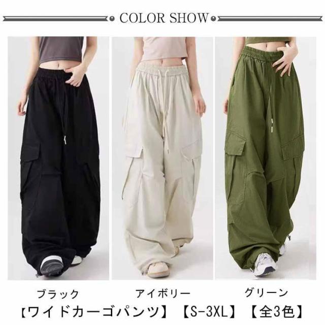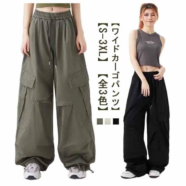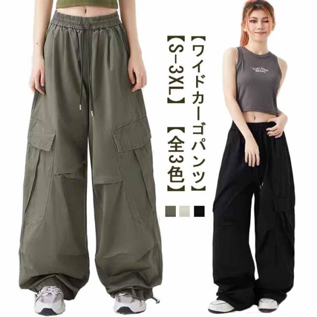 ワイドパンツ レディース カーゴパンツ ルーズ ゆったり ウエストゴム ジョガー パンツ 韓国 ミリタリーパンツ カーゴポケット トレンド 太め 大きいサイズ 長ズボン ボトム 作業着 ストリート 送料無料