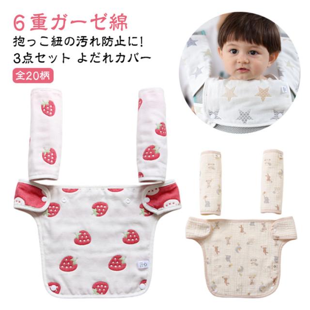 3点 セット 抱っこ紐カバー ガーゼ 6重 綿100% 抱っこひも よだれカバー 抱っこ紐 胸 カバー 胸当て 抱っこ紐用 セット よだれ リバーシブル よだれパッド 胸当て 綿 コットン 6重ガーゼ 綿100 可愛い おしゃれ 女の子 男の子