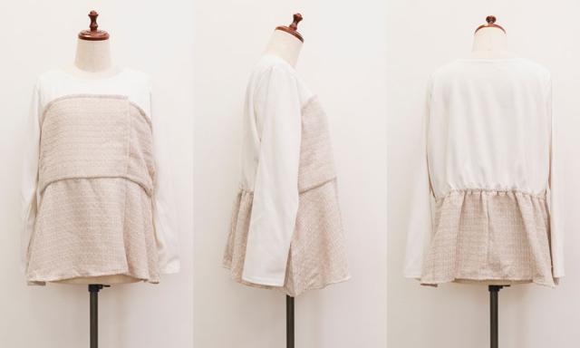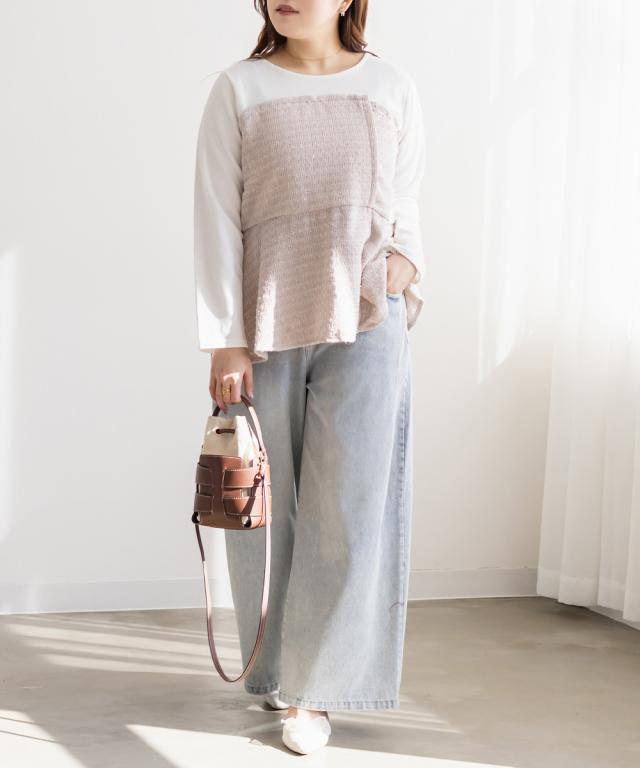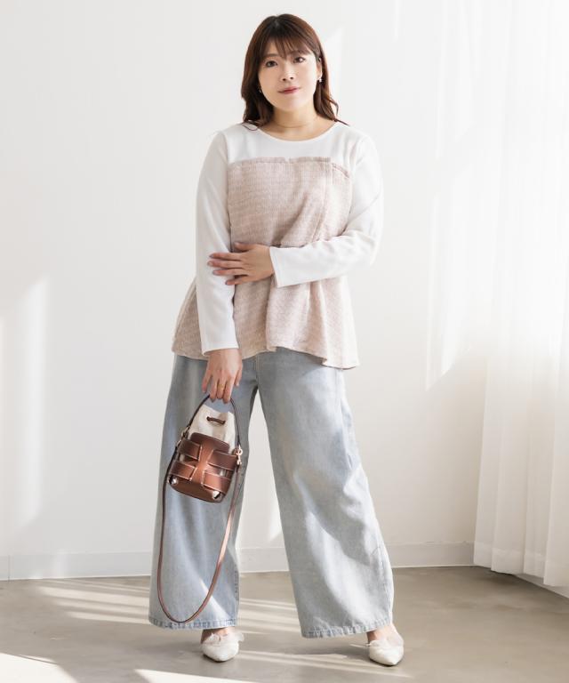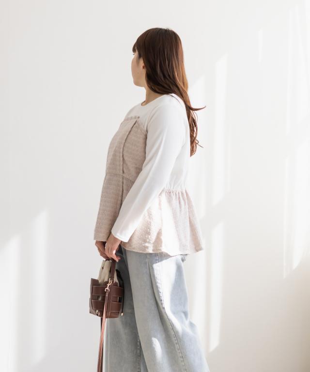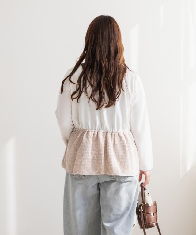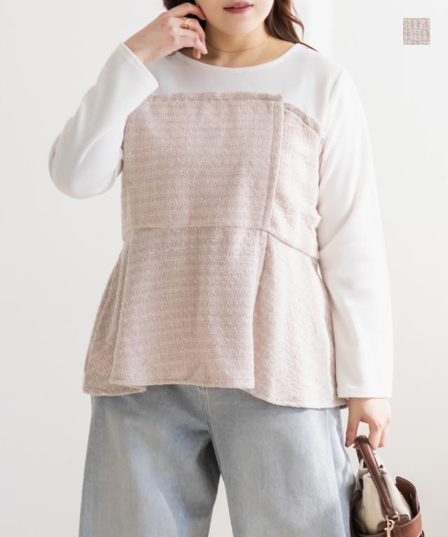 大きいサイズ/レディース/3L/4L/ツイード切替ペプラムカットプルオーバー