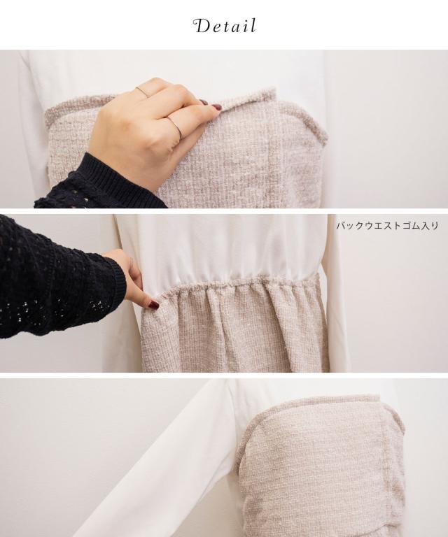 | 凹凸のある柔らかいツイード素材です。 (袖・デコルテ部分はやや起毛感のある柔らかい素材です。) |