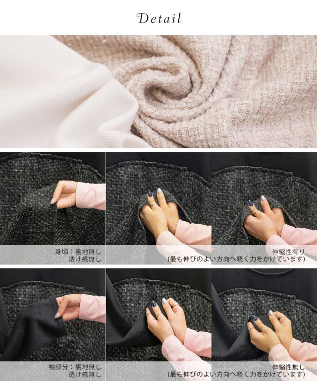 ツイード生地:裏地無し、透け感無し、伸縮性有り / 袖部分:裏地無し、透け感無し、伸縮性無し 02オフホワイト,12ブラック