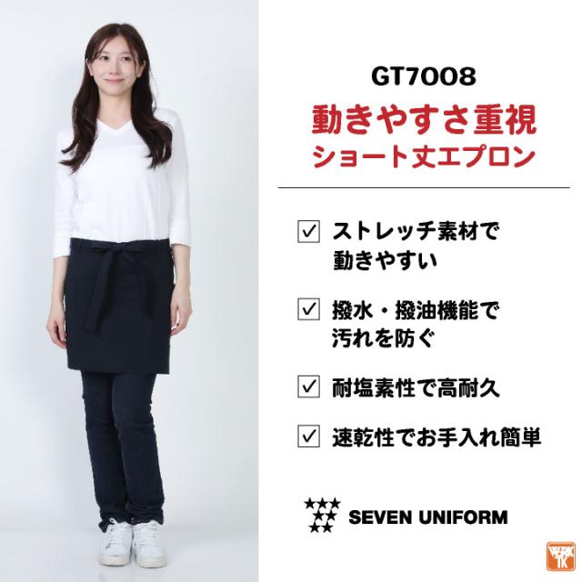 GT7008 SEVEN UNIFORM ショートエプロン 撥水 撥油 耐塩素性 ネイビー ワイン ベージュ カーキ ブラウン ライトグレー チャコールグレー ブラック