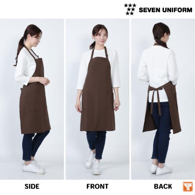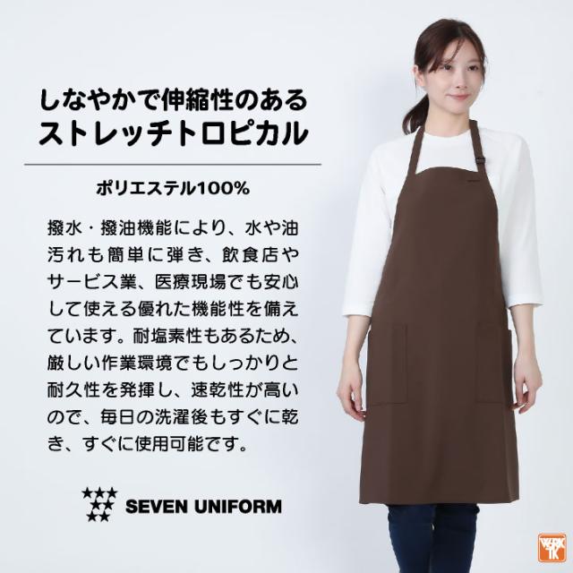 GT7011 SEVEN UNIFORM 首掛け 胸当てエプロン 撥水 撥油 耐塩素性 ネイビー ワイン ベージュ カーキ ブラウン ライトグレー チャコールグレー ブラック