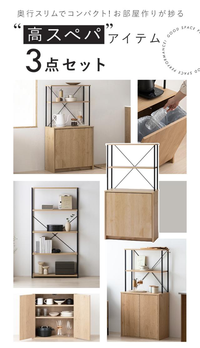 新生活 家具 3点セット 一人暮らし 棚 スリム ラック シェルフ 本棚 食器棚 キッチンボード 約 幅60 高さ120 ゴミ箱 分別 棚付き 目隠し 収納 おしゃれ 北欧 木目調 ナチュラル インテリア 奥行スリム スペパ アイリスオーヤマ ひとり暮らし *