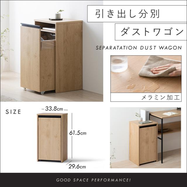 【引き出し分別ダストワゴン HDW-350 ナチュラル/ブラック】