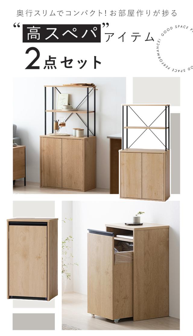 (検索用:スぺパシリーズ 2点セット 食器棚 60cm レンジ台 キッチンボード ゴミ箱 キャスター付き 2分割 ダストボックス 収納 スリム 一人暮らし )