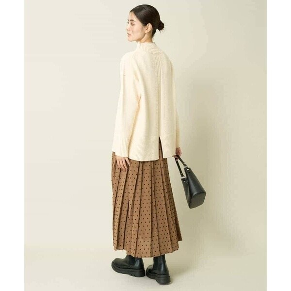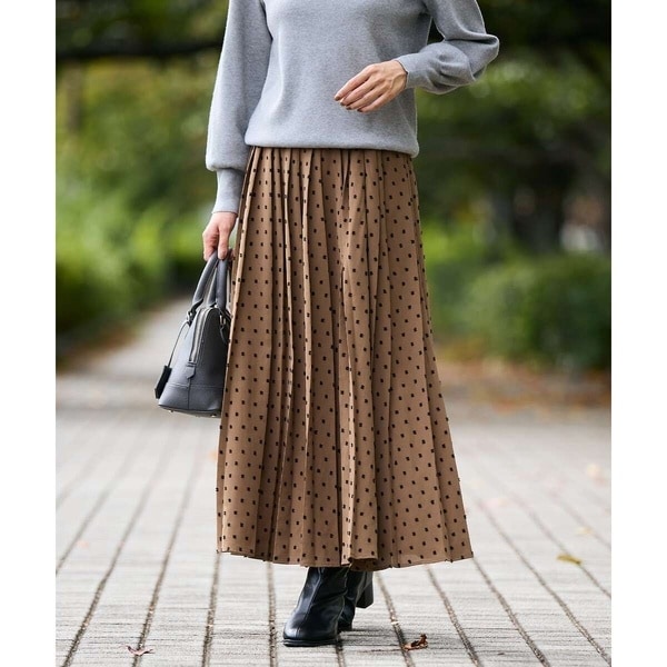 ・広がりすぎないボックスタックプリーツが特徴のドットスカート