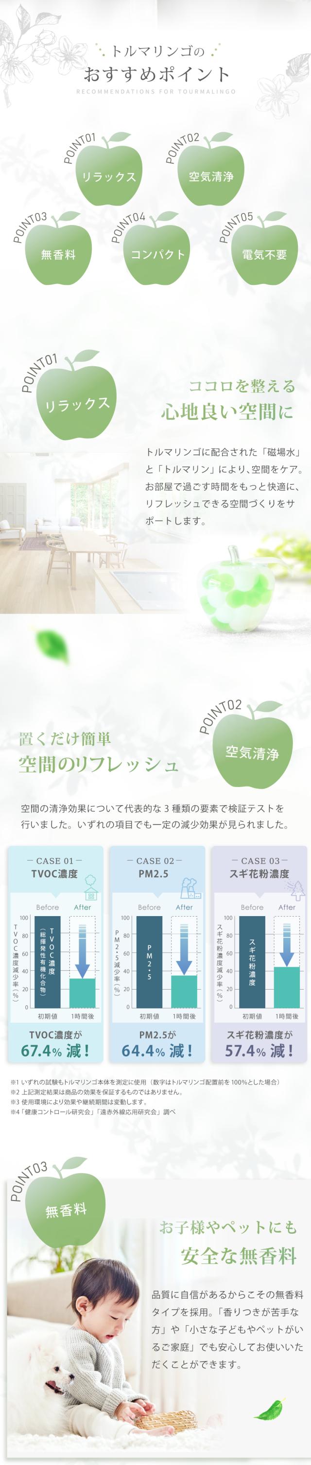| 設置場所 | 玄関、 リビング、 トイレ、 寝室、 デスク周りなど、 空気を整えたい場所に設置してください。 |