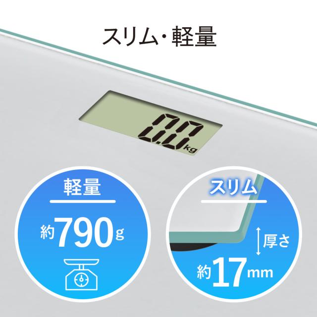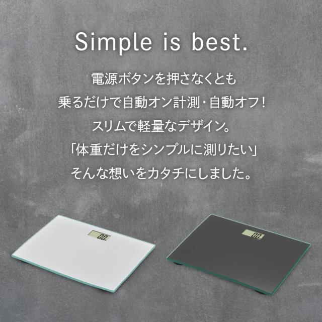 体重計 コンパクト 乗るだけ簡単計測 シンプル デジタル ヘルスメーター 軽量 スリム コンパクト 電源自動ON/OFF 強化ガラス nikome デジタル体重計 NKM-WS01 ミニマム ホワイト ブラック